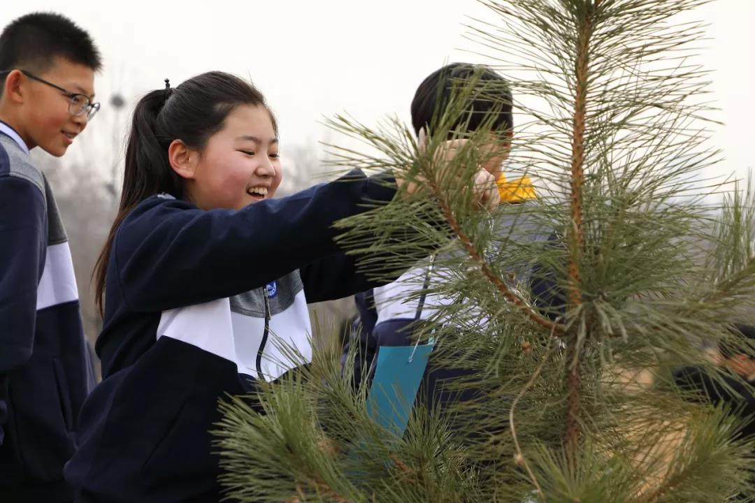 种植一份希望,梦想一片未来。以班级为单位,每班的学生把写有寄语的心愿卡系在了自己栽种的松树上。从学生微笑的脸庞上,我们能感受到他们满满的喜悦和成就感。